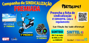 Mas atenção: quando você não contribui, você joga para os trabalhadores sindicalizados a responsabilidade de manter vivo o seu sindicato. E isso não é justo. Faça parte do Sinttel-ES SINDICALIZE-SE. Clique aqui e participe da Campanha de Sindicalização premiada e concorra a uma bicicleta elétrica, uma TV de 40 polegadas e um Smartwatch Aurafith
