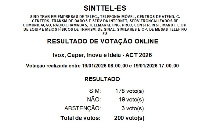 Com a proposta aprovada, haverá uma contribuição assistencial a ser descontada dos trabalhadores e trabalhadoras NÃO SINDICALIZADOS nas empresas do Grupo IVOX para custeio das despesas geradas com a negociação do acordo coletivo pelo SINTTEL-ES. O valor é de 3% do salário base de cada empregado/a, divididos em três parcelas de 1% nos meses de Fevereiro, Março e Abril/2026. O trabalhador ou trabalhadora filiado/a, que contribui mensalmente, não paga essa taxa.