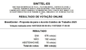 Sete meses após a data base (1º de janeiro), o Acordo Coletivo de Trabalho na BrasilCenter está concluído. A assembleia virtual realizada nos dias 10 e 11 de julho/25 aprovou a proposta de reajuste nos salários e nos benefícios, mais abonos, que só minimizaram os prejuízos.